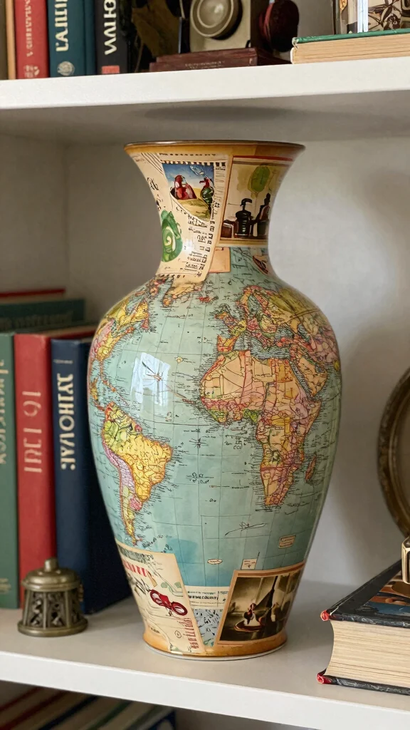 Infuse your decor with a sense of adventure by decoupaging old maps or postcards onto your vases! This creative idea not only repurposes materials but also tells a story, bringing a unique charm to your home. Imagine a vase adorned with snippets of vintage travel maps, igniting memories of wanderlust.