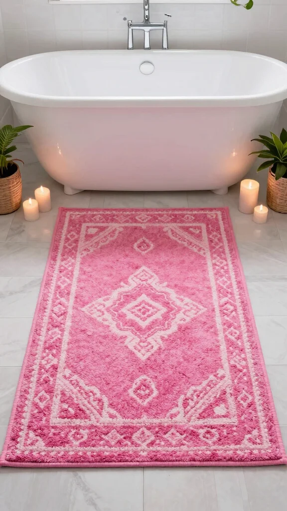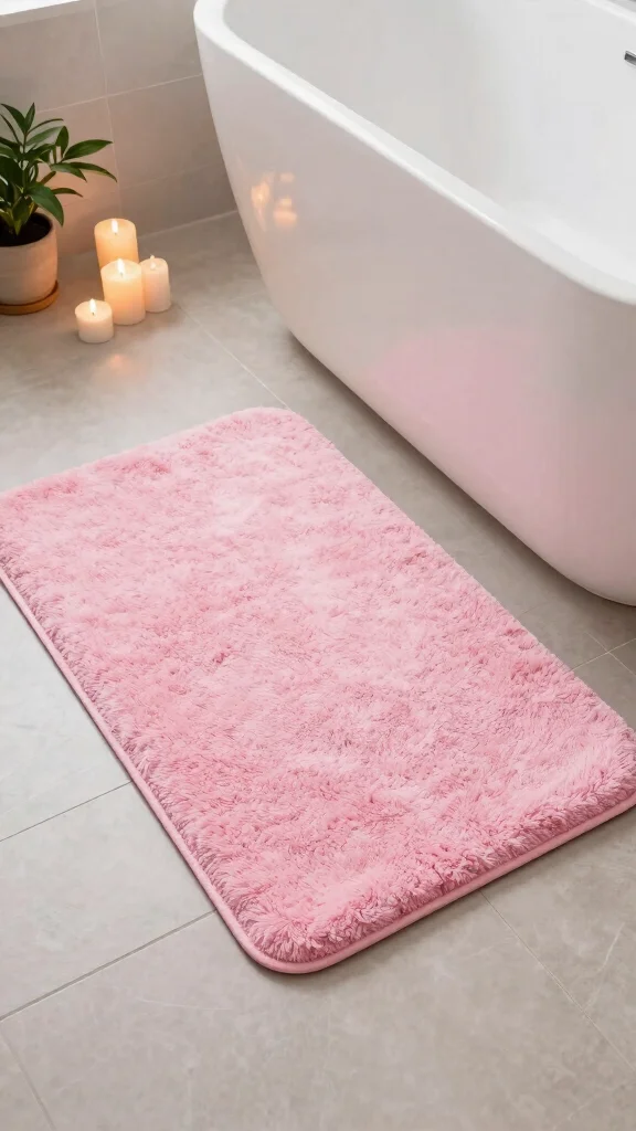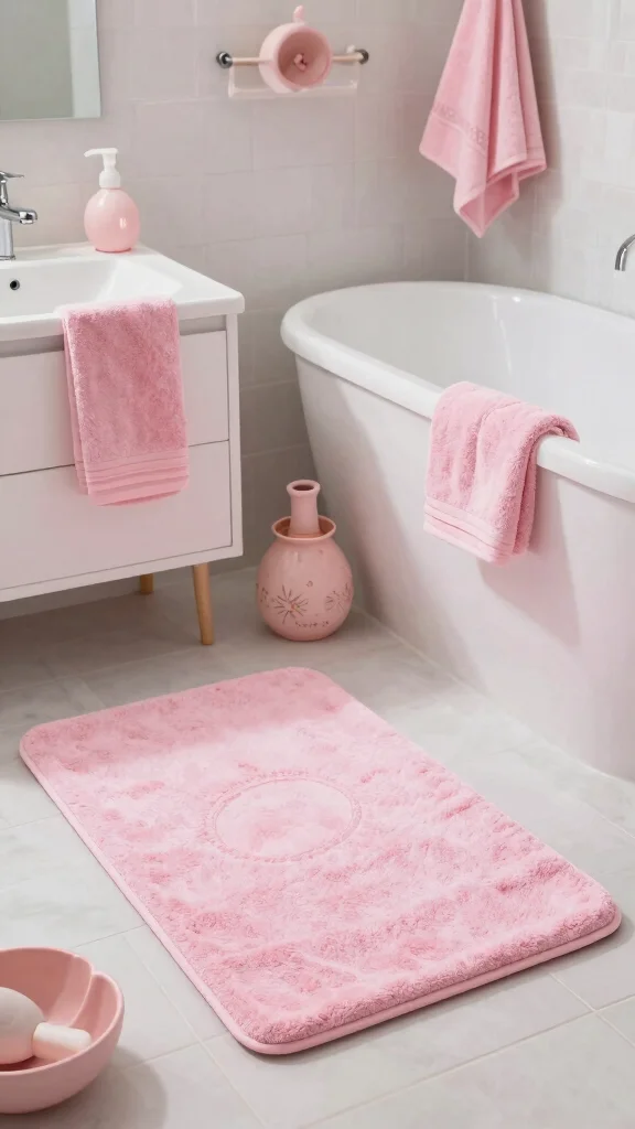 A plush pink bath rug adds softness and warmth, making your bathroom feel inviting. Choose a thick and absorbent rug for comfort underfoot after a bath or shower. Consider shapes like circles or rectangles to match your layout and style.