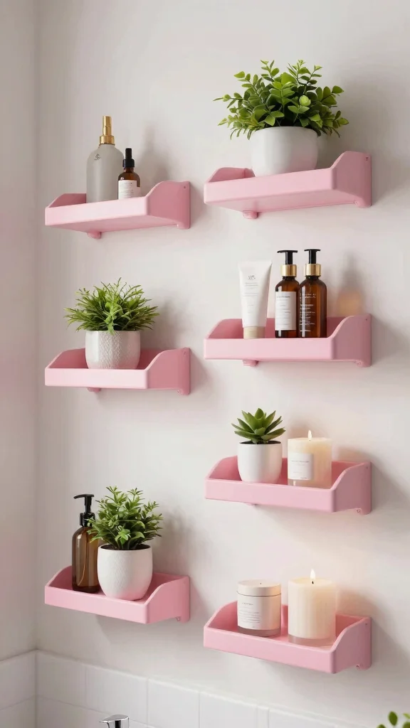 Add character to your bathroom walls with charming wall art in soft pink hues. From framed botanical prints to abstract pieces, art can infuse your space with personality. Look for water-resistant options suitable for humid environments to ensure longevity.