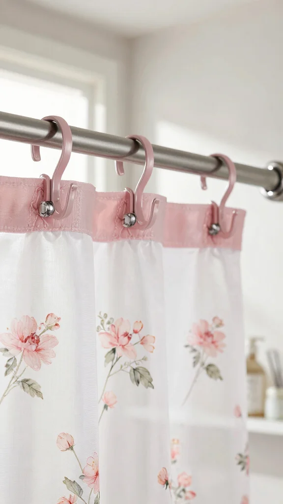 Add a touch of elegance with floral shower curtain hooks in soft pink that brighten your bathroom. These small accessories can make a big impact on your shower setup. Look for designs that reflect your style, whether they are simple or ornate.
