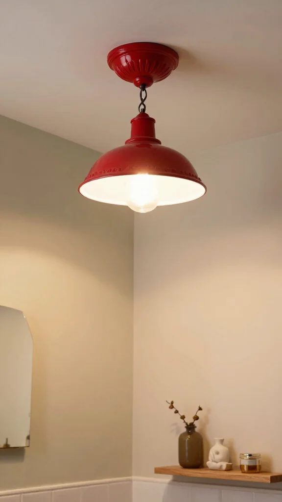 Select a unique red lighting fixture to create a warm and inviting atmosphere in your bathroom.