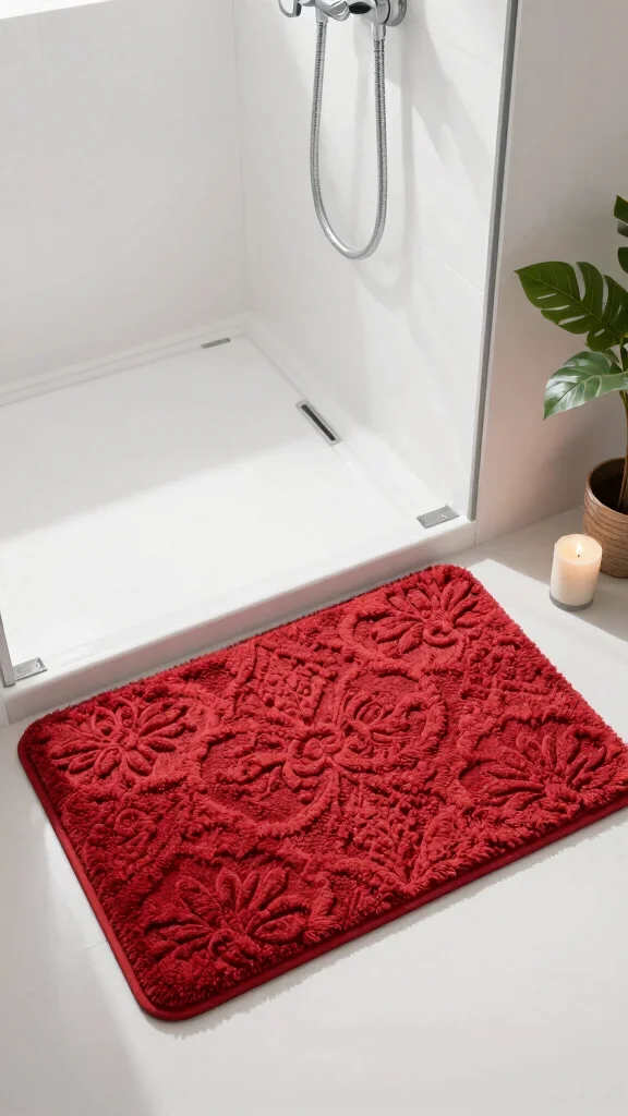 A red shower mat adds both comfort and style to your bathing experience. This accessory provides a luxurious layer underfoot, keeping your feet warm while stepping out of the shower. Its vibrant color enhances your bathroom’s aesthetics, making it feel inviting and chic.