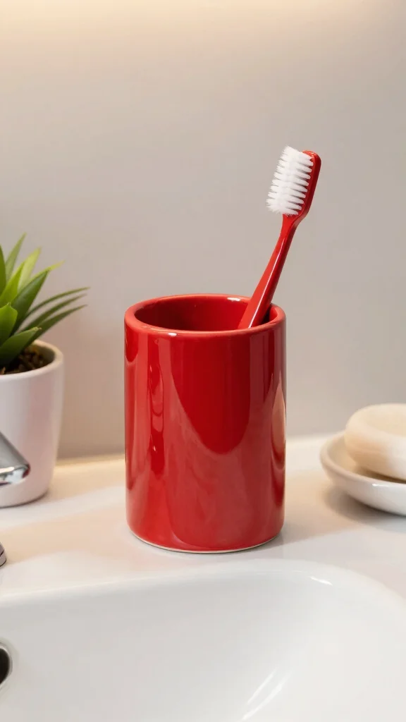 A classic red toothbrush holder is a simple yet effective way to introduce color into your bathroom. This accessory keeps your toothbrushes organized while setting a vibrant tone for your decor. Its stylish design can seamlessly fit into your overall aesthetic.