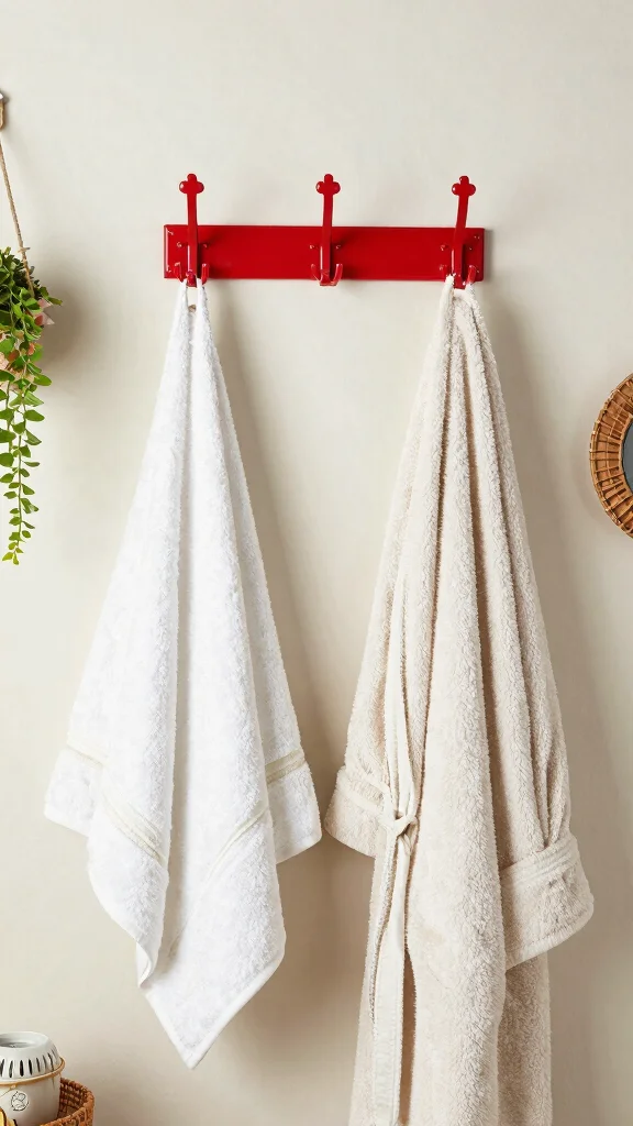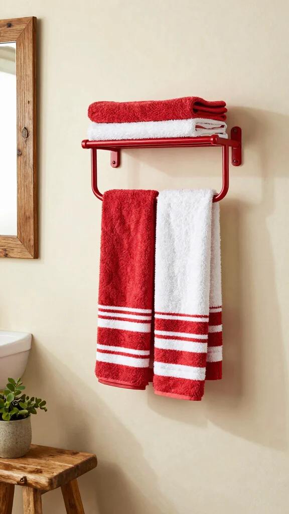 A vintage red towel rack brings both function and charm to your bathroom, offering a stylish way to display your towels. Its vibrant hue contrasts beautifully with neutral backgrounds, adding a nostalgic touch that elevates your decor. Whether you choose a sleek metal design or a rustic wooden piece, this accessory enhances the overall aesthetic while remaining practical.