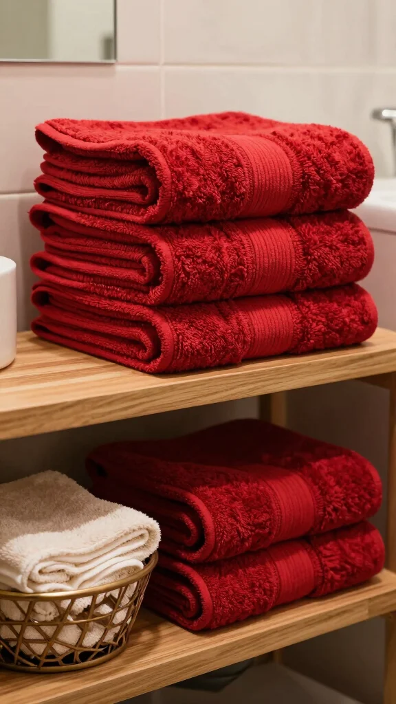 Consider varying sizes, such as hand towels and washcloths, to create a layered and inviting look. Pair plush towels with smoother ones to add visual interest and depth to your decor. Striking red towels can become a focal point, providing warmth and helping to unify your space.