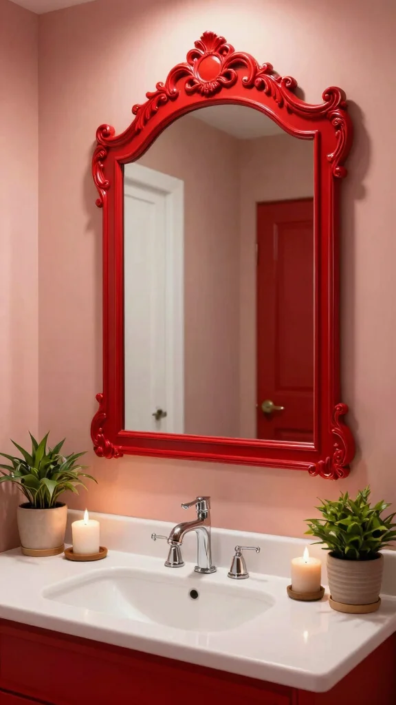 Choose a bold red mirror as a statement piece to reflect light and add depth to your space.