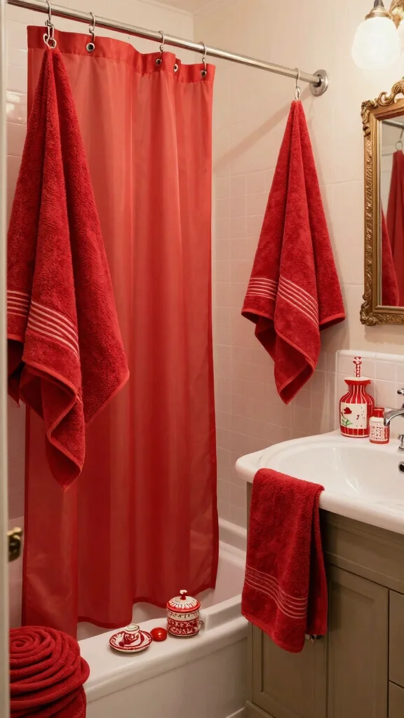 Size matters when choosing bathroom accessories. A bold red shower curtain should fit your tub perfectly. Measure the width and height of your shower area before purchasing. Additionally, consider the size of towels and mats. Oversized pieces can overwhelm a small bathroom, while tiny accessories may get lost in a larger space. Balance is key!