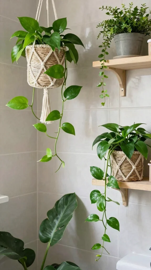 The fresh greenery creates a serene retreat, making your bathroom a perfect self-care haven.
