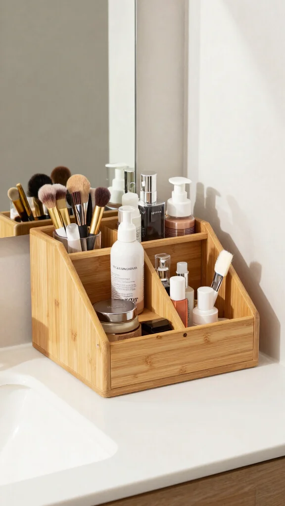 Transform your cluttered countertops with a space-saving vanity organizer! Look for tiered organizers made from bamboo or recycled plastic to hold makeup, brushes, and more in an efficient and stylish way. This thoughtful addition can help you maintain order in your daily routine.