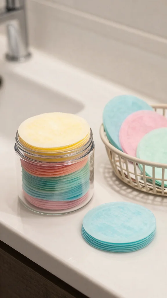 When selecting reusable pads, choose those that are easy to wash and maintain, and consider various colors and patterns to match your style. Storing them in a stylish jar or basket on your vanity adds organization and flair.
