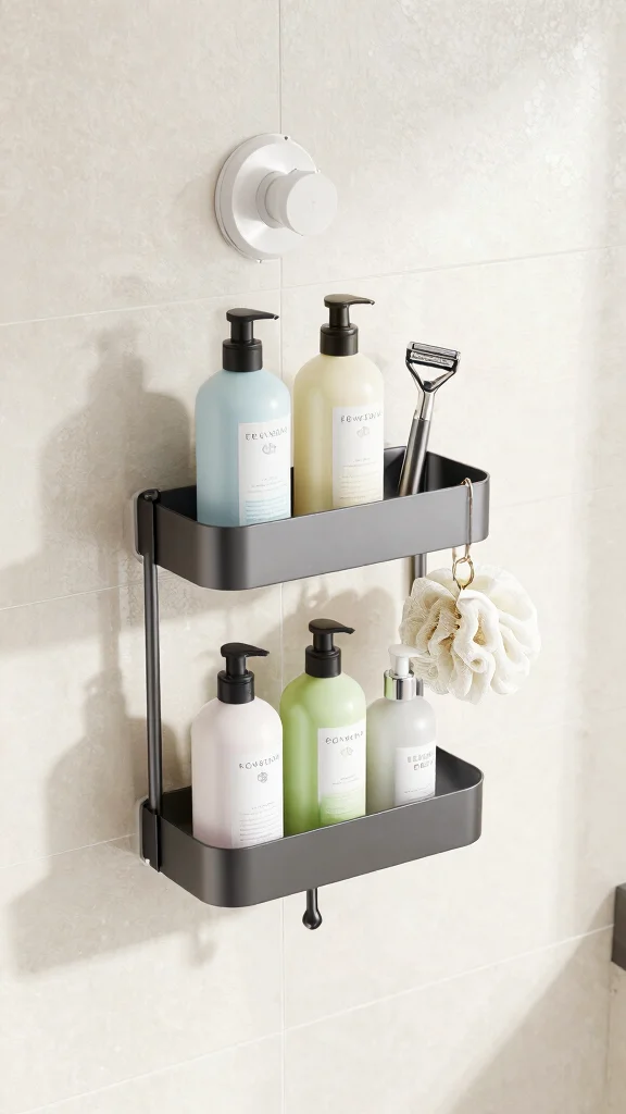 Choose a caddy that features hooks for razors and loofahs, along with compartments for various bottle sizes. Suction cups can help keep it securely attached to the wall, maximizing space without sacrificing convenience.