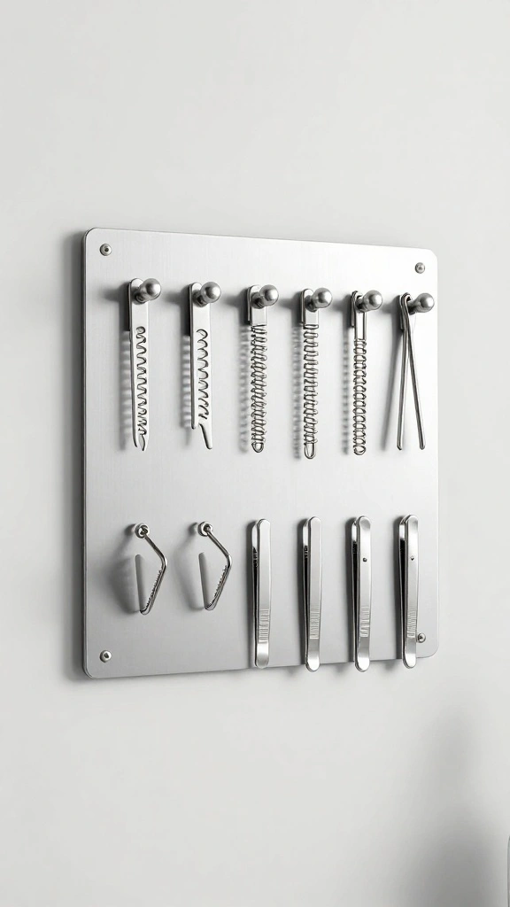 Organize small metal accessories effortlessly using magnetic strips! This clever solution is perfect for keeping hairpins, tweezers, and small scissors in one secure place. Installing a magnetic strip inside a cabinet door or on a wall can help free up drawer space while keeping essentials easily accessible.