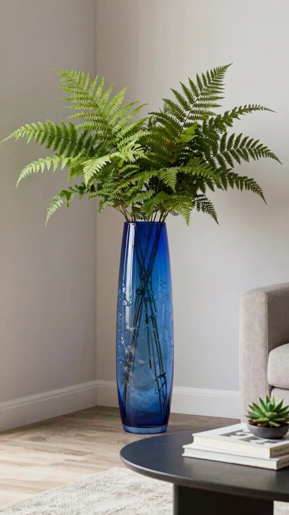 Fun fact: recycled glass vases use up to 40% less energy to manufacture than new glass, keeping tall floor vases eco-chic. Pro tip: pair deep blues and greens with white flowers for a striking, sustainable centerpiece in any living space.