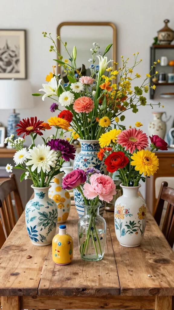 Embracing upcycled vintage vases not only enhances your decor but also infuses your space with a sense of history and creativity.