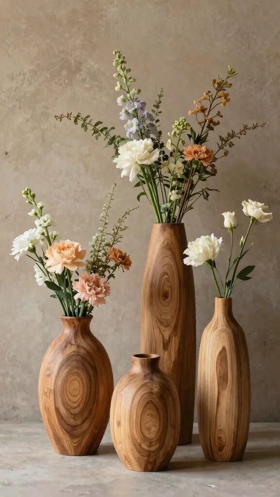 Wood vases beautifully complement natural arrangements, enhancing the aesthetic of your space with their rich textures and organic feel.