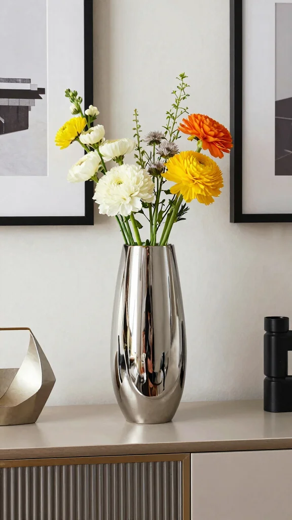 Metal-accented vases stand out in your home, showcasing elegance and modernity.