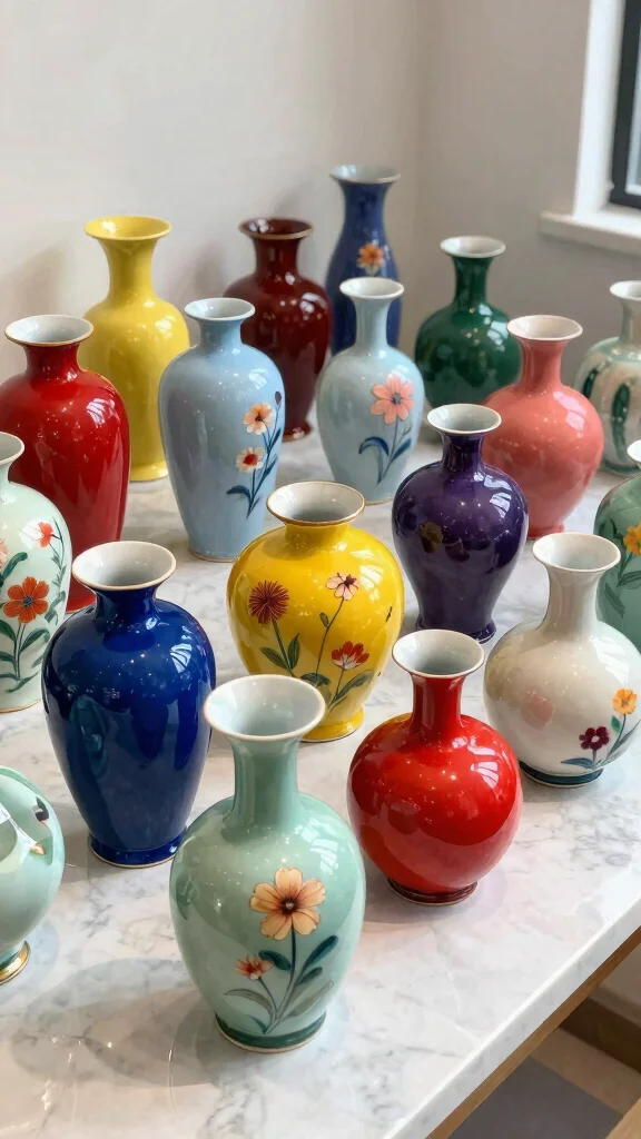 Colored porcelain vases add a touch of sophistication to your decor. Their glossy finishes and vibrant colors can elevate any floral arrangement, making them eye-catching focal points. Often designed with intricate details, these vases are both functional and artful.