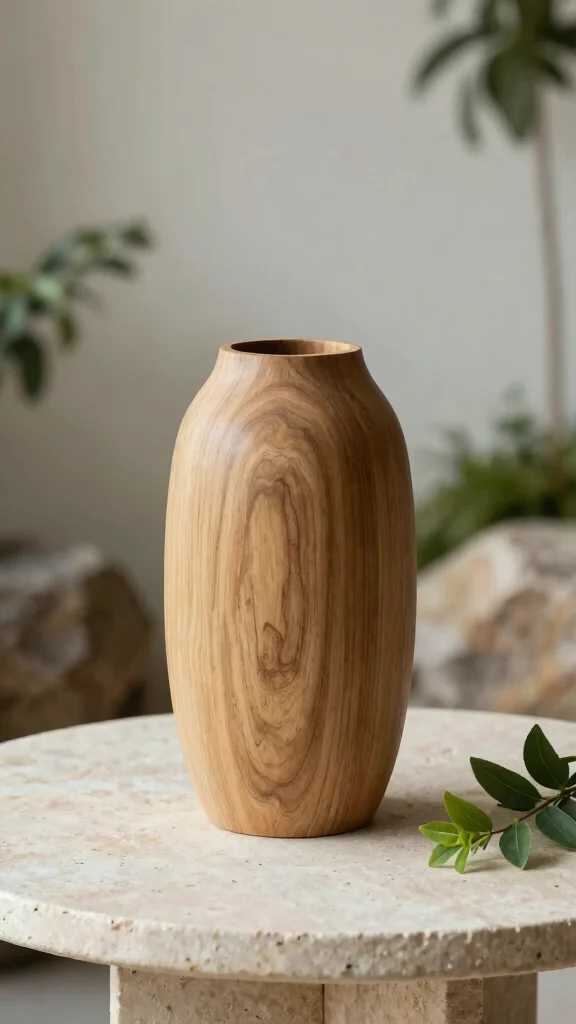 Minimalist wooden vases provide a grounding presence, enriching your decor with nature’s beauty.