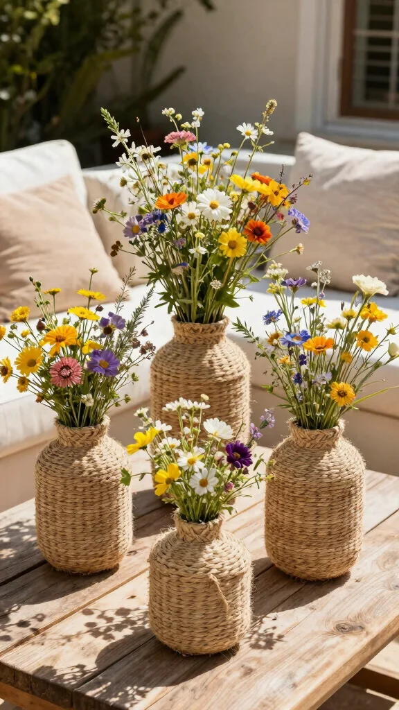 Woven fiber vases offer an eco-friendly option that highlights organic beauty.