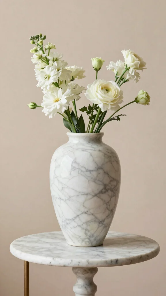 Statement marble vases prove that unique vases can be art and anchor your decor at once. Their bold veining adds character, while their weight keeps arrangements steady—perfect for swapping vibrant blooms and keeping a timeless, eco-friendly look.