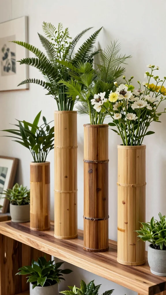Adding bamboo vases not only elevates your decor but also supports sustainable craftsmanship.