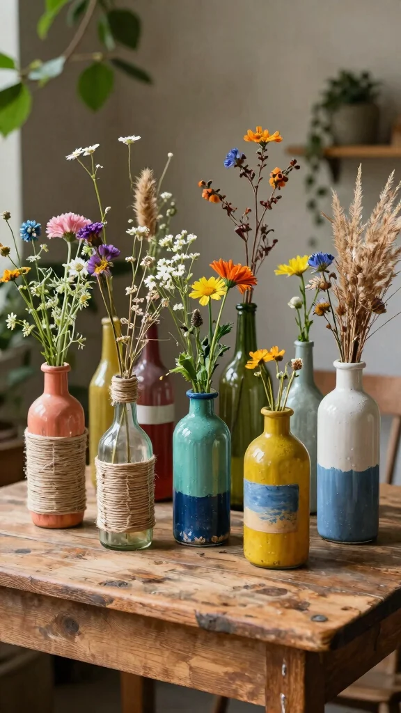 Transforming old bottles into vases is a creative way to enhance your decor while promoting sustainability. Each upcycled vase tells a unique story, reflecting your personal style. You can paint, wrap them in twine, or leave them bare, revealing your artistic flair.