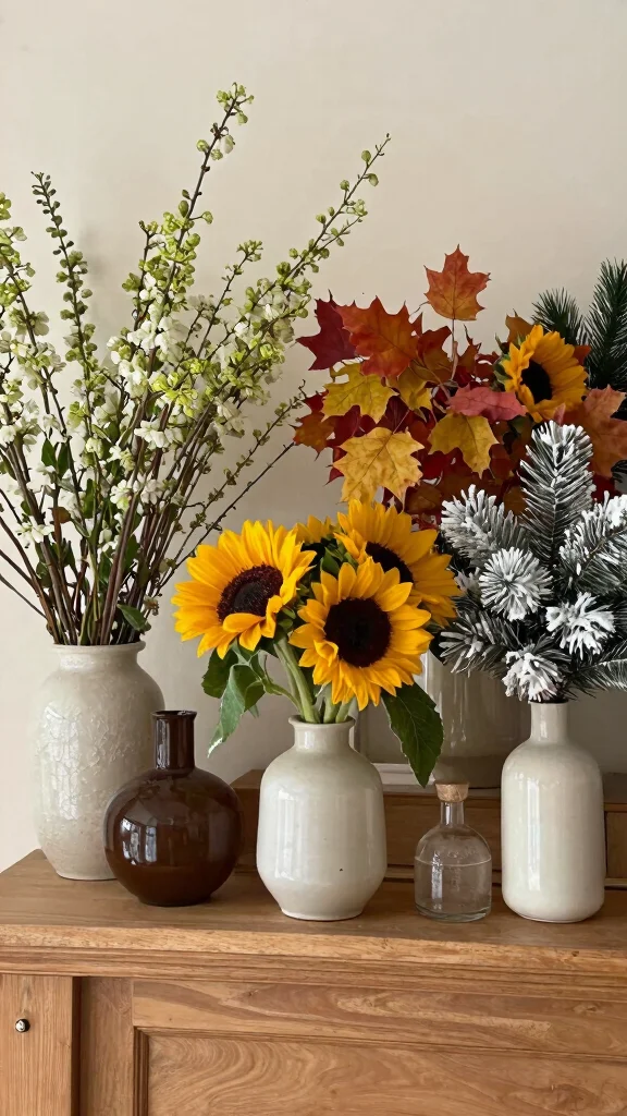Change vase decorations with the seasons, using different flowers or themes to keep your decor fresh.