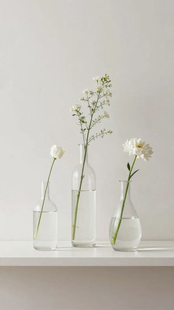 Pro tip: mix decorative vases of different shapes (tall cylinder, rounded, and square) to add visual interest, and reuse water wisely when you choose fresh flowers.