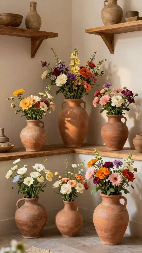 Creating matching sets of clay vases enhances the cohesive look, and pairing them with natural elements like wood or stone adds depth to your decor. Experimenting with varying sizes can also contribute to visual interest throughout your home.