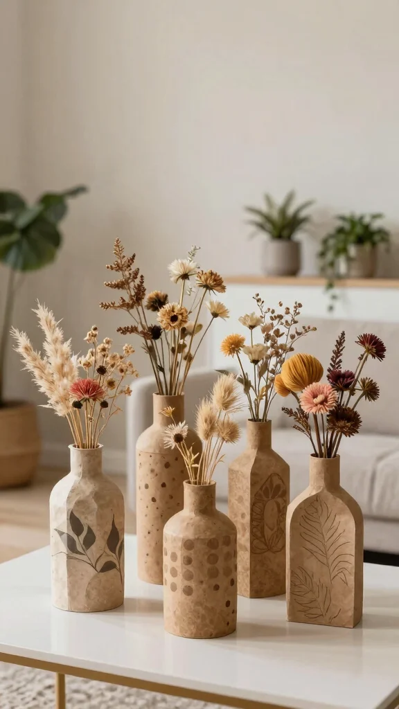 Layer a few stems or greenery, switch out seasonal greens, or rotate pieces between rooms to maximize impact. A small table with three varying heights of decorative vases can transform a room without a big investment—perfect for DIY home decor lovers and eco-conscious shoppers.