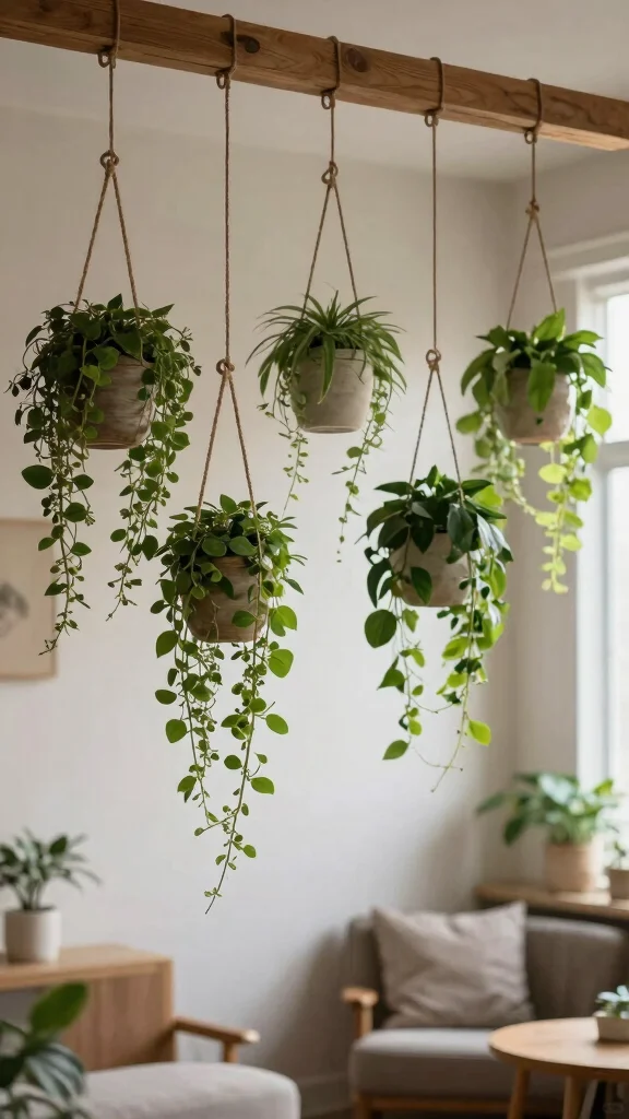 This unique decor idea is particularly fitting for small spaces, bringing depth and dimension without cluttering the ground. The suspended plants can create a calming environment, enhancing the overall aesthetic of your home.