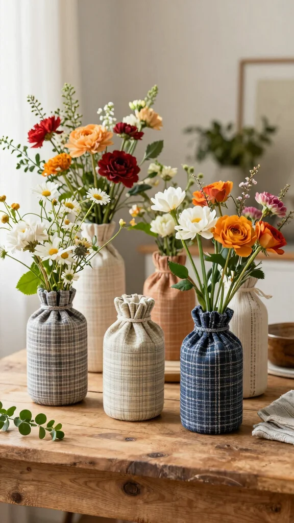 Revitalize a simple vase by wrapping it in fabric, adding patterns and textures that elevate your decor. This DIY project allows you to choose vibrant fabrics that perfectly complement your interior style. From floral prints to bold geometric designs, the possibilities are endless. Once wrapped, these fabric-covered vases can be filled with fresh or faux flowers, creating a striking display that is eco-friendly.