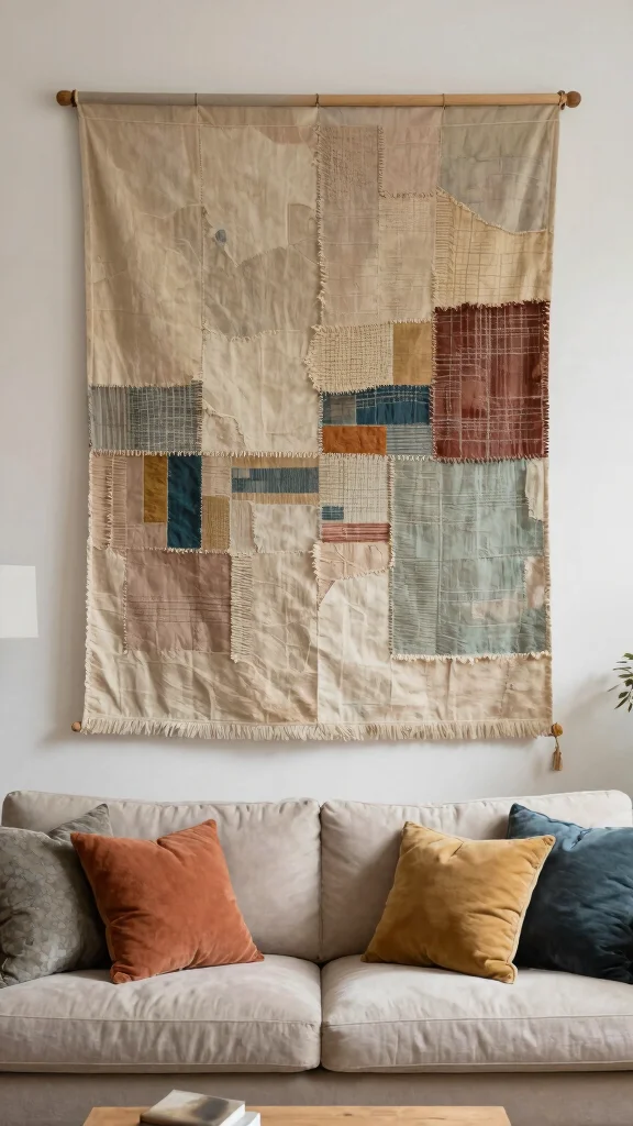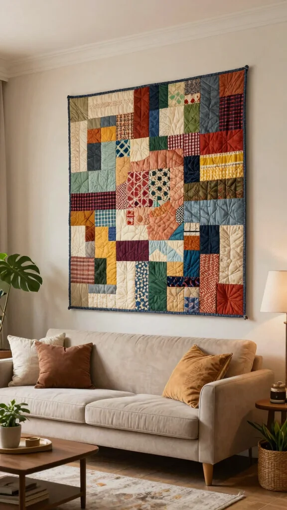 Quilted wall art beautifully combines warmth and texture, making it a perfect addition to your living room. By utilizing recycled fabric scraps or vintage quilts, you can create unique pieces that tell a story and invite a cozy atmosphere. This art form celebrates the craftsmanship of quilting while enhancing your decor.