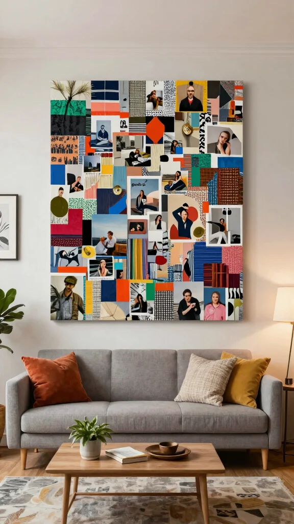 Choose a theme that resonates with you, such as travel or nature, and mix various materials for added depth. Position the collage as a focal point or as part of a larger gallery wall to captivate your guests.