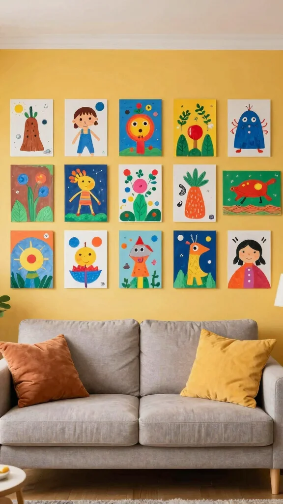 Designate a wall or section in your home to display your children’s art, allowing them to express themselves freely. Encourage themed projects, like nature-inspired pieces, and frame their best work for a polished look.