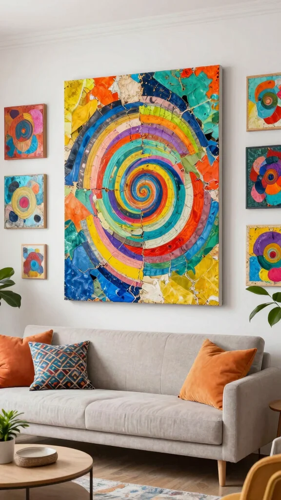 Consider splatter paintings made from leftover paints or collages crafted from cut-up canvases to give your space a fresh, exciting vibe. Look for local artists who specialize in this medium, or even try your hand at making your own pieces.