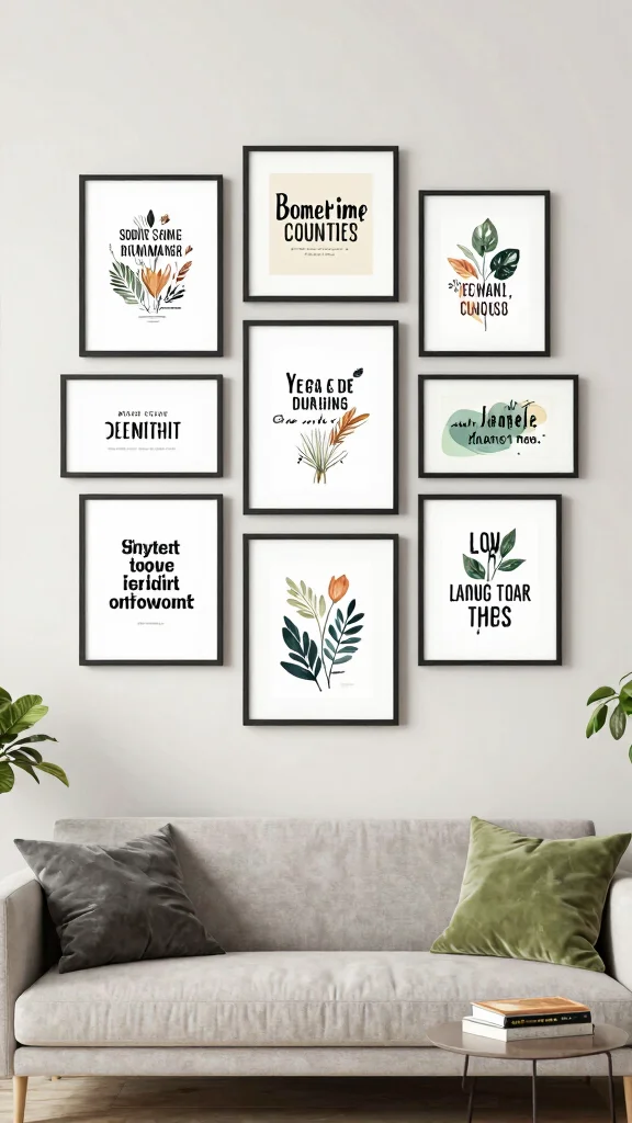 Select quotes that resonate with you and consider mixing typography with illustrations for added visual interest. Placing these pieces where you’ll see them often ensures they provide daily inspiration.