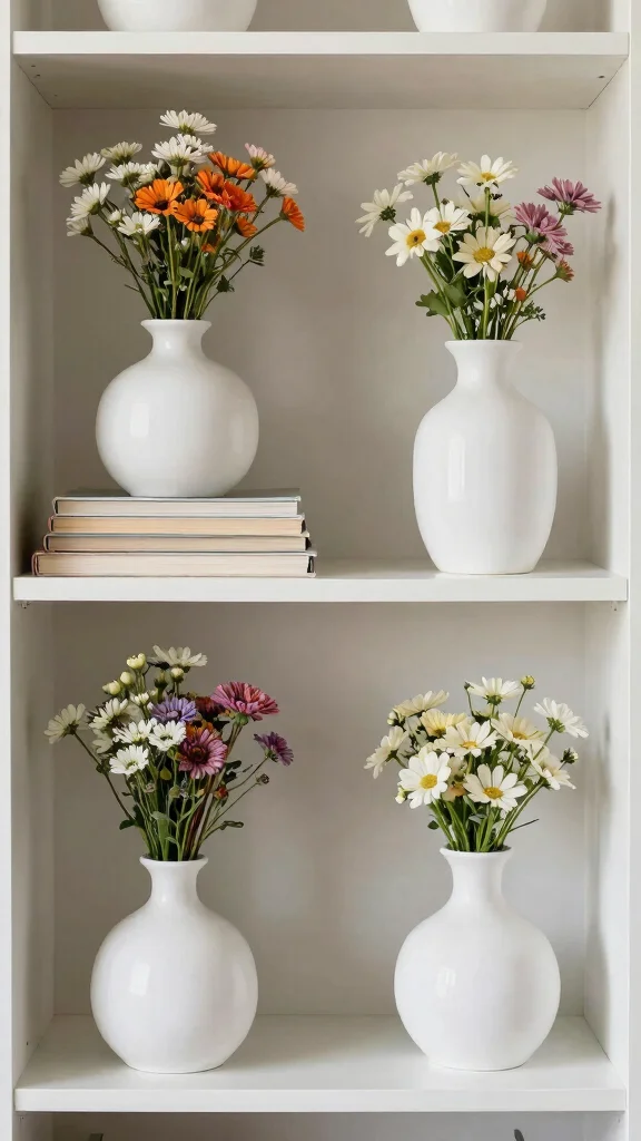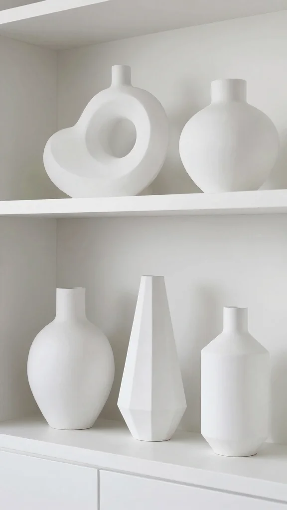 Fun fact: mixing white vases of different heights on a minimalist shelf can visually expand a small space by up to 15%. When you stack slender and bulbous shapes, your white vase decor ideas feel effortless, airy, and chic—no clutter needed.
