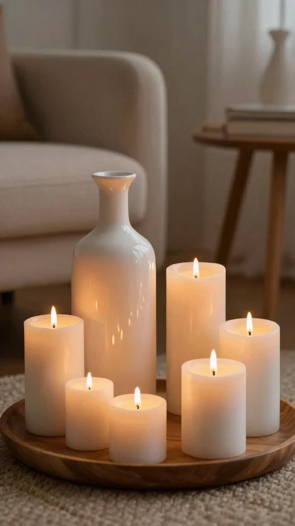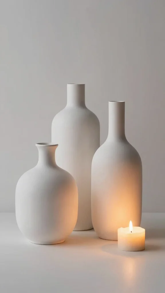 Pair white vases with candles for a cozy atmosphere, enhancing the overall decor with soft lighting.
