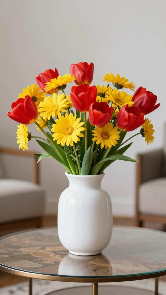 Pairing bright flowers with a simple white vase creates an eye-catching display that enhances your decor.