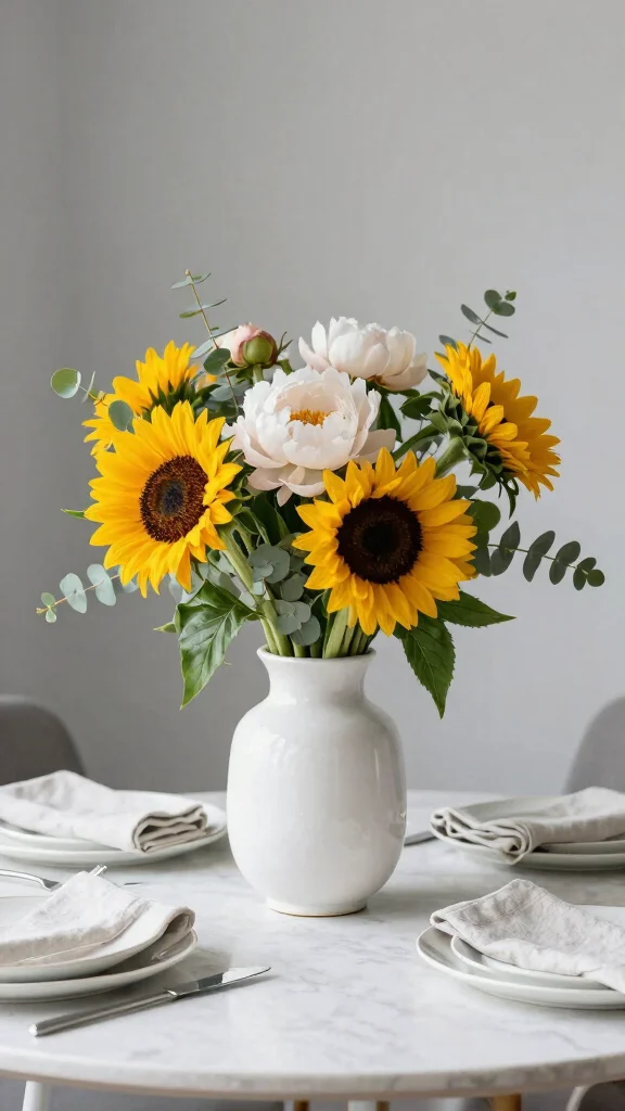 Use a statement floral arrangement in a white vase to add elegance and warmth to your dining or living area.