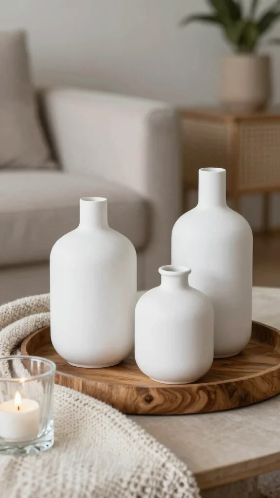 – White vases are versatile decor pieces that can enhance any room, especially in minimalist design settings.
