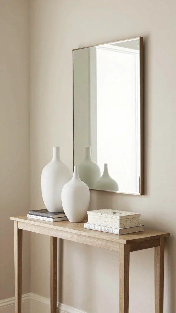 This setup not only serves as decoration but also provides a practical space for keys and mail. Choose vases that harmonize with your overall color scheme, and consider incorporating other accessories, like a plant or art piece, for added intrigue.