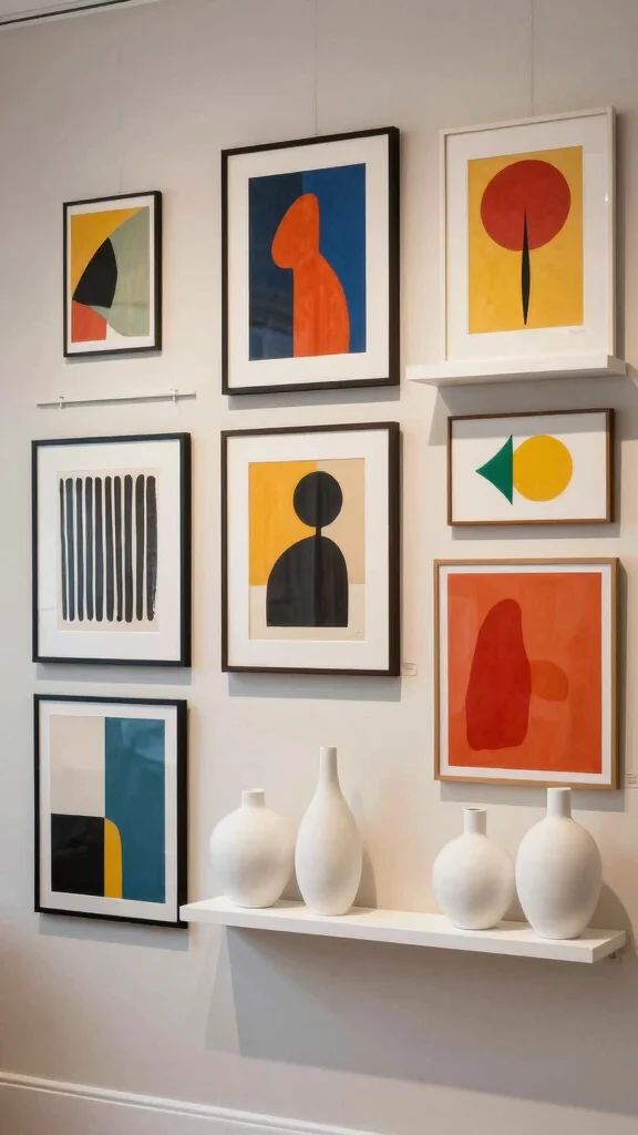 This idea is especially effective in small spaces, where every inch counts, allowing for functional and artistic decor. Choose a cohesive color scheme that harmonizes with your artwork, and keep wall decor simple to avoid overwhelming the arrangement.